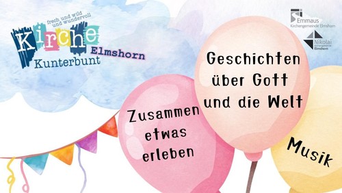 Samenpapier basteln, deine Welt mit Lego bauen, Geschichten hören, singen.... die Kirche Kunterbunt geht in Elmshorn zum zweiten Mal an den Start. Kirche Kunterbunt - das ist gemeinsame Zeit für Familien, für Opas, Omas, Tanten oder Onkel... - ein bunter Erlebnisnachmittag erwartet alle, die Lust haben, dabei zu sein. Und Kuchen gibts natürlich auch :)