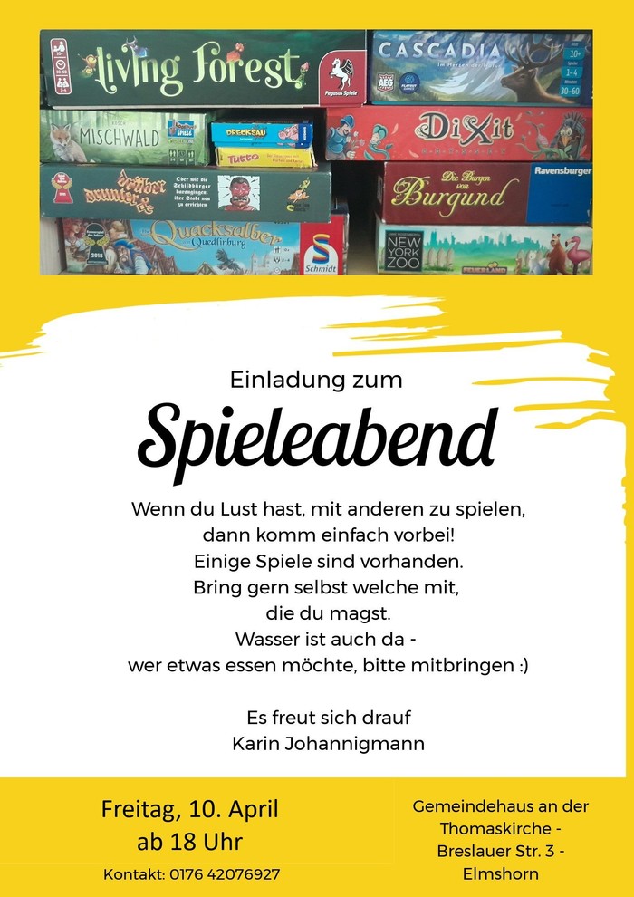 Spieleabend am Freitag, 10. April ab 18 Uhr